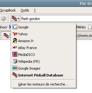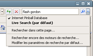 Cette page toute simple vous permet d'ajouter The Internet Pinball Database (IPDB) aux moteurs de recherche de la barre de recherche de Mozilla Firefox ou d'Internet Explorer 7.